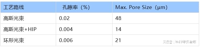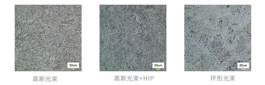 环形光束打印成形的钛合金结构件,其致密度与孔洞尺寸已达到与热等静压(HIP)后处理工艺相当的水平,且显微组织结构未出现显著差异,表明该技术可在不依赖HIP工序的情况下直接实现近全致密的高质量成形。