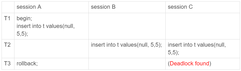 - 直到 T3 执行插入操作时,InnoDB 才真正的分配了 trx_id 也就是 1289 (除了修改,如果使用了 FOR UPDATE 也不算只读事务)
