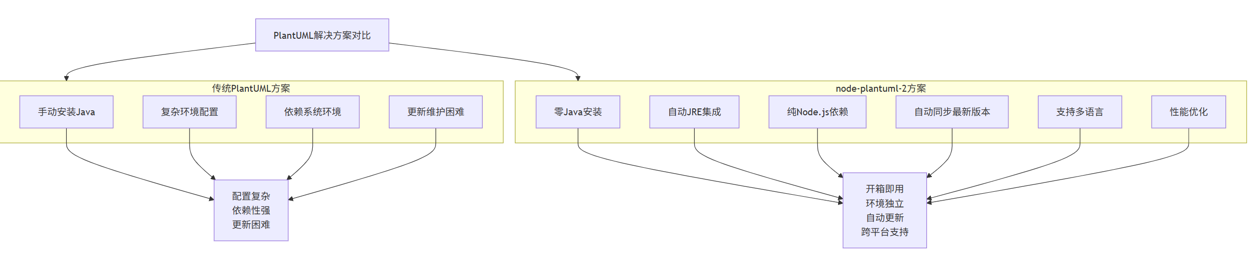 图:node-plantuml-2与传统PlantUML解决方案的对比