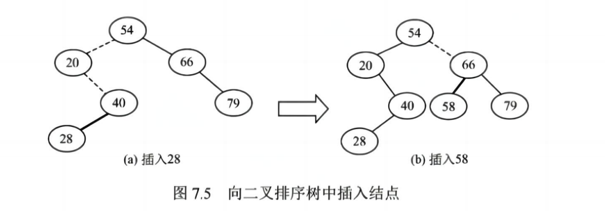 - 插入:从根开始,按大小关系插入合适位置