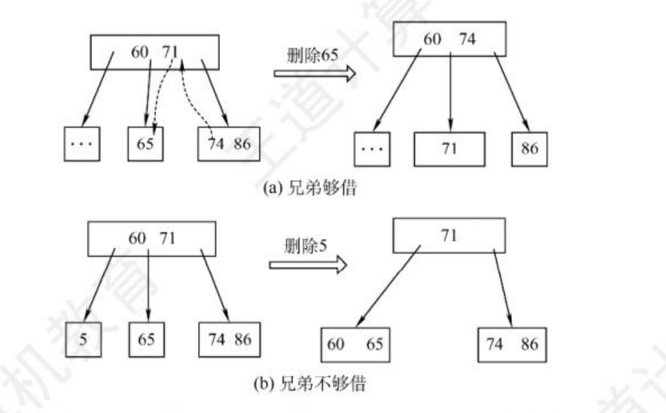- 删除:若不足则借或合并