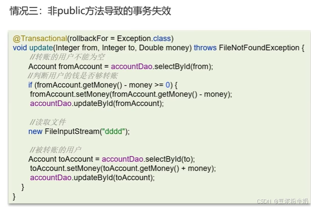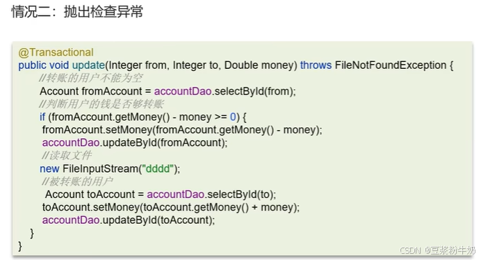 ② 抛出检查异常,配置 rollbackFor 属性为 Exception