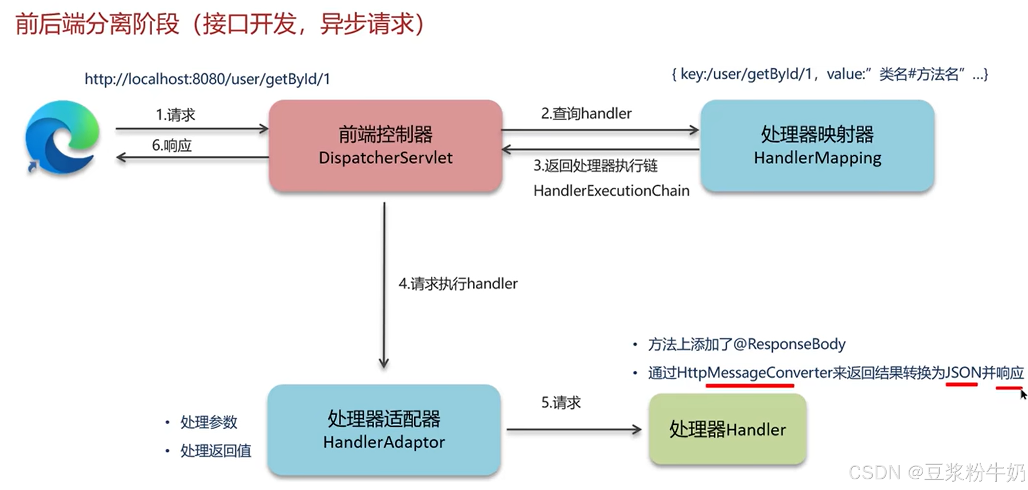 - 用户发送出请求到前端控制器 DispatcherServlet