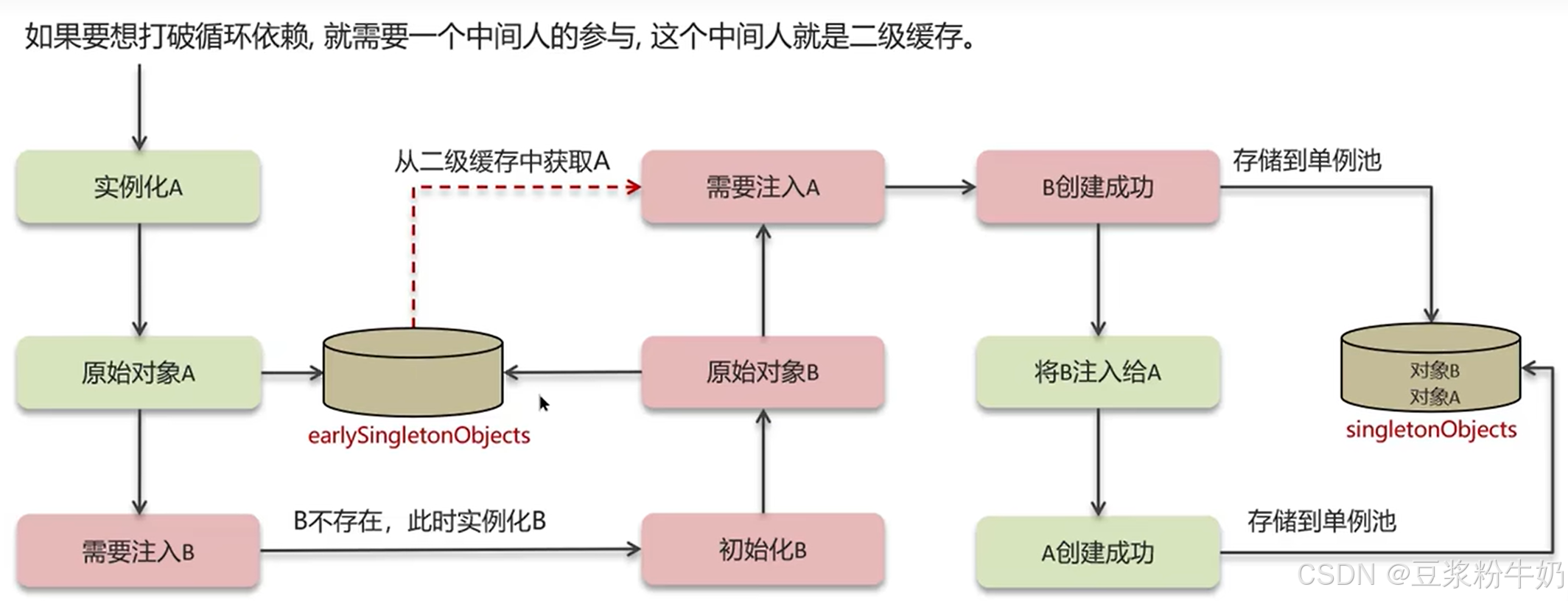 假如说A是单例,那就不行了,那他怎么解决循环依赖问题;