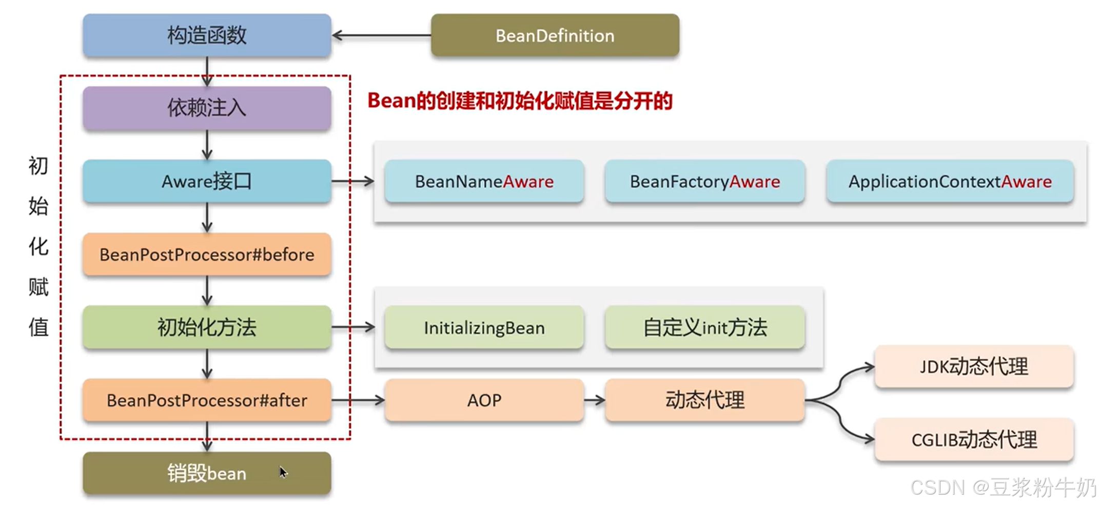 ① 通过 BeanDefinition 获取bean的定义信息:读取Bean的配置信息(比如@Component、@Bean),确定Bean的类型、作用域、依赖关系等;