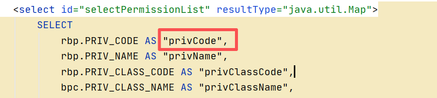 原因:在Oracle数据库的SQL语句中,给别名加双引号是为了强制保持别名的大小写格式 。因为Oracle默认会将未加引号的标识符(包括表名、列名和别名)自动转换为大写,如果不加引号,privCode会被存储为PRIVCODE,导致后端返回给前端的Map中键名为大写,而前端使用小写字段名(如item.privCode)访问时会得到undefined。通过添加双引号,如AS "privCode",可以确保别名按原样保存为小写,使前后端字段名保持一致,避免数据访问错误。这是Oracle特有的需求,在其他如MySQL等数据库中通常不需要这样做。