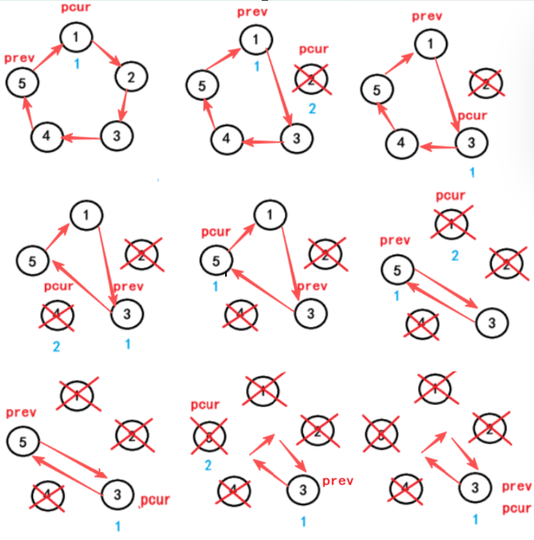 ListNode* prev = createCircle(n);