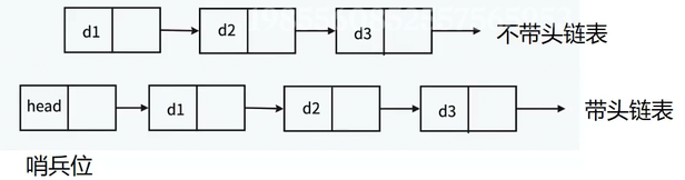 **2.2.带头或者不带头:**带头指的是链表中有哨兵位节点,即为头节点,不带头没有哨兵位
