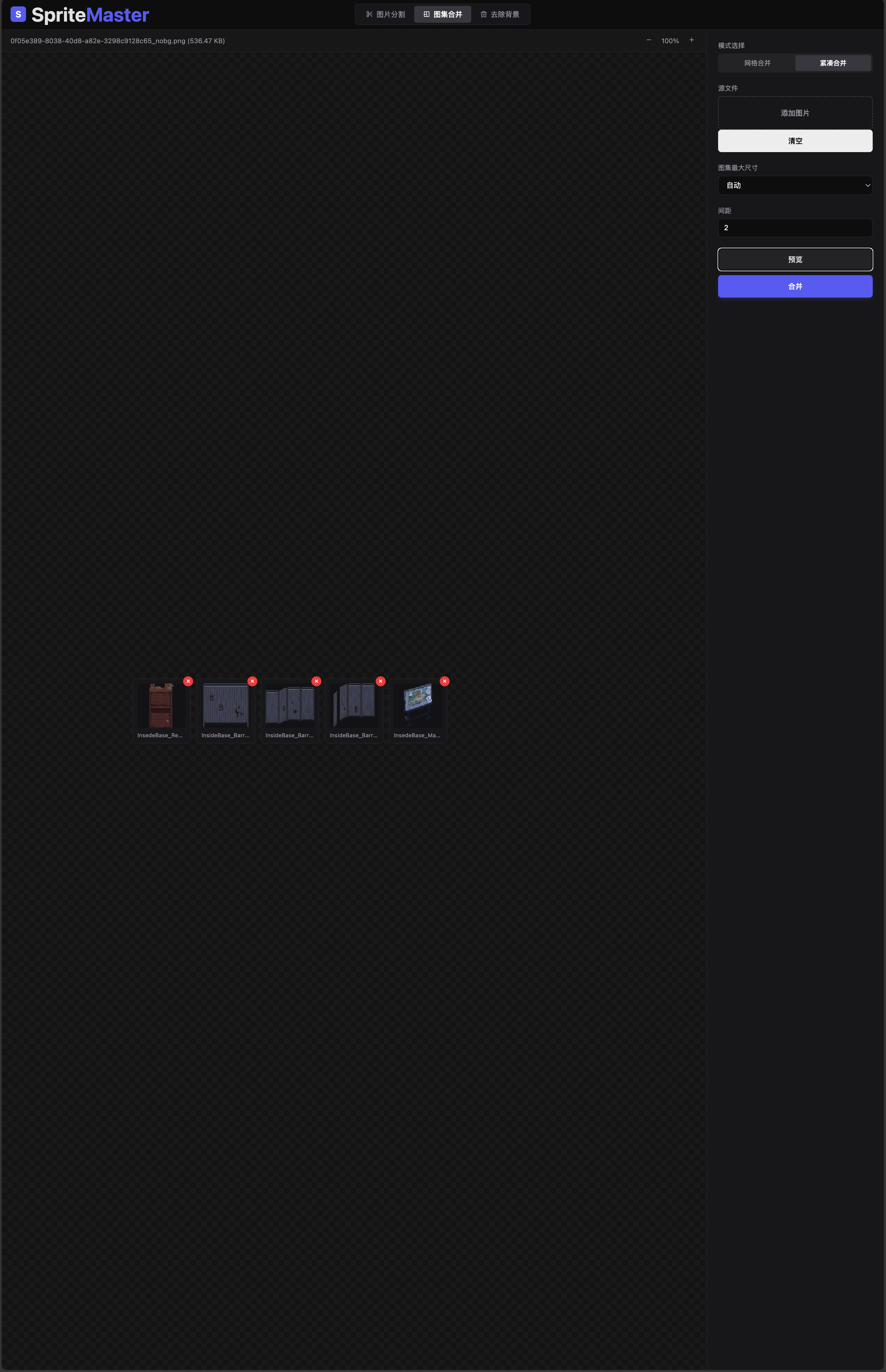 游戏开发中通常需要使用到将多个图片打包成图集,或将一个图集中的图片分离出来单独使用的场景,为了解决这一痛点,花了一点时间制作了一款前后端分离式的辅助小工具。