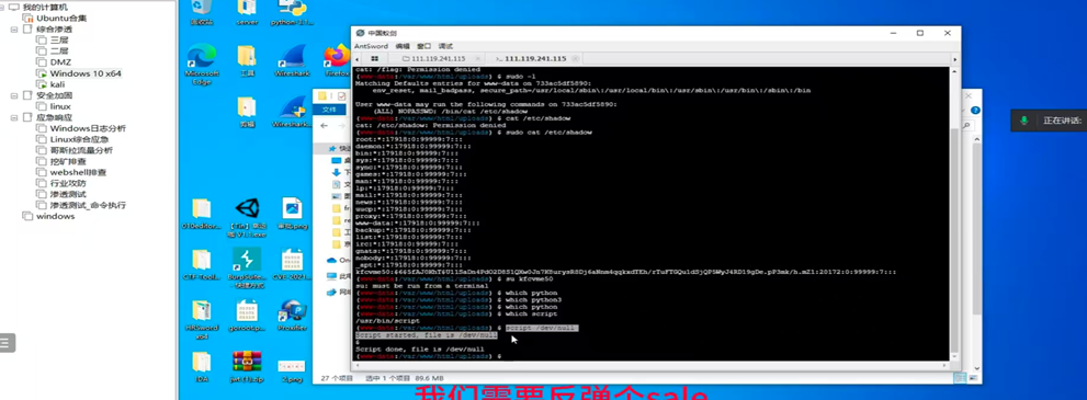 (10).进入用户,发现切不进去,提示不是终端,需要创建伪终端 ,但是蚁剑没有伪终端,可以用python创建伪终端,使用ssh登录是实际终端,伪终端类似可以实际访问终端,用script创建一个伪终端 ,蚁剑只是webshell管理工具,无法创建伪终端和提权,只能反弹shell 需要换一个软件冰蝎和哥斯拉,冰蝎只能使用自带webshell