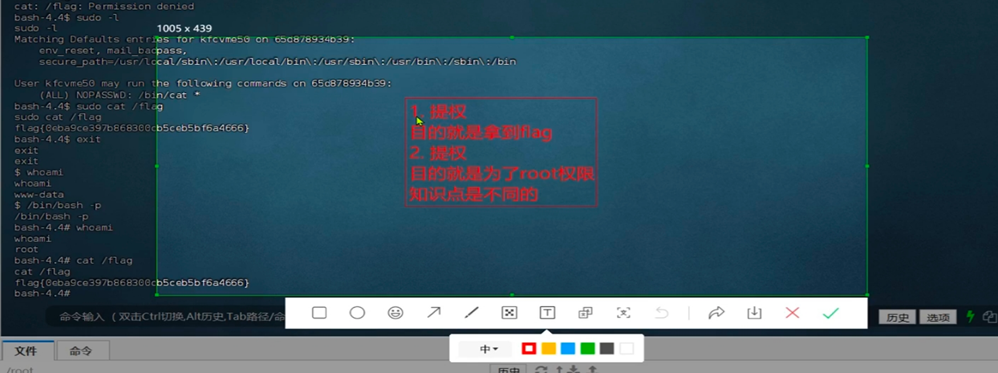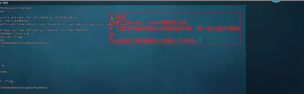 (9).验证,进入之后打开flag发现提权,用sudo或者suid提权,sudu -i,查看/etc/shadow