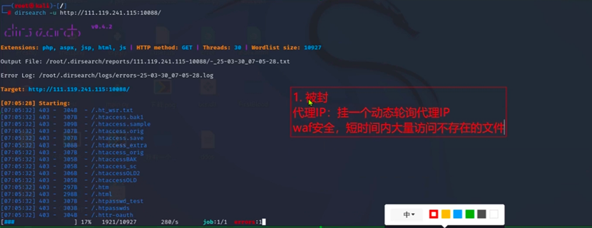 (2).dirsearch扫描,防止封ip,挂一个动态代理ip,便于爬虫扫描