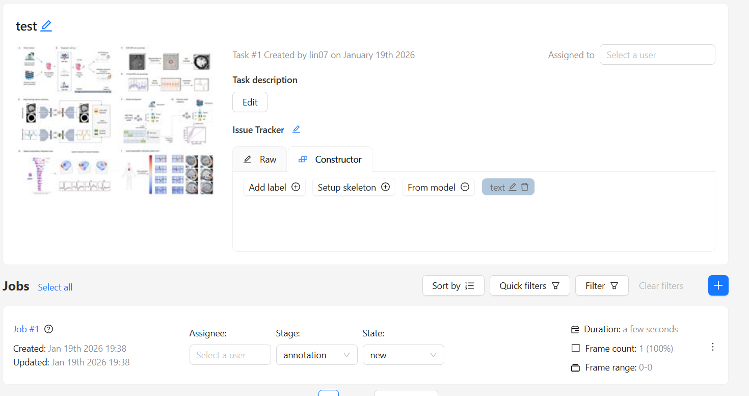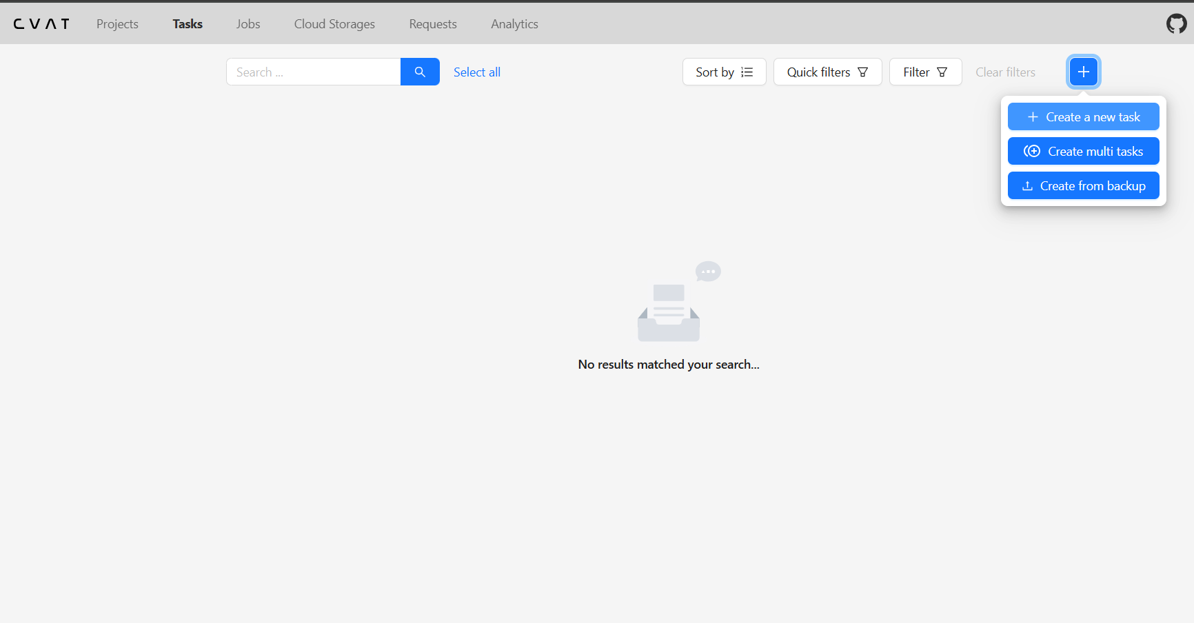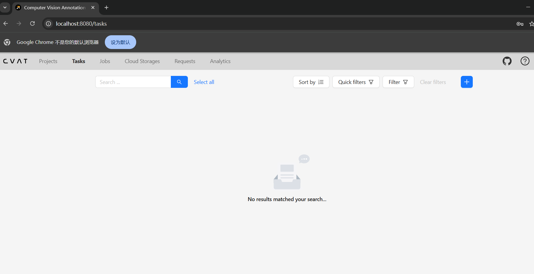 打开谷歌浏览器,访问http://localhost:8080,回车后,会弹出 CVAT 的登录界面,输入刚刚创建的用户名和密码,点击登录,就成功进入 CVAT 的标注工作台了!🎉🎉🎉
