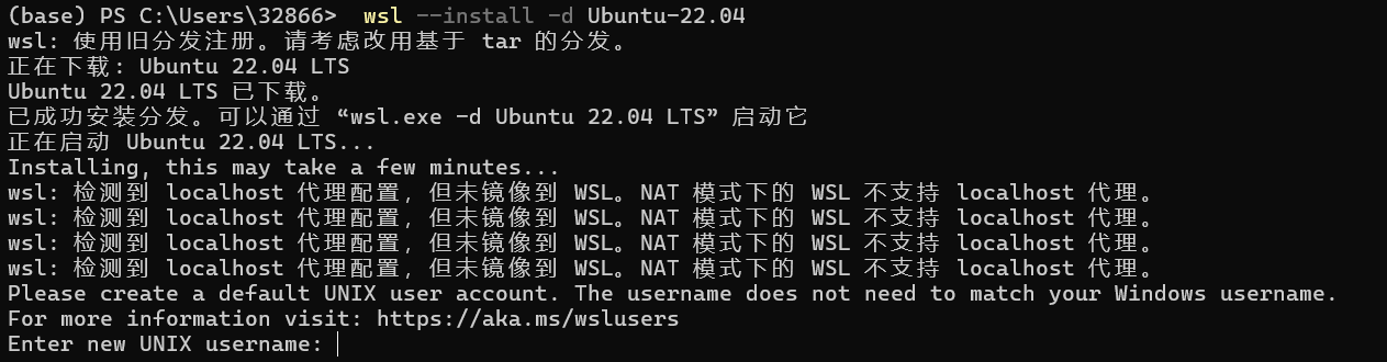 此用户名和密码特定于安装的每个单独的 Linux 分发版,与 Windows 用户名无关。