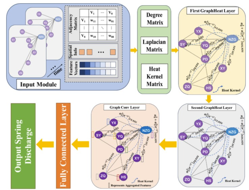 A graph neural network embedded with heat kernel for multistep forecasting spring discharge