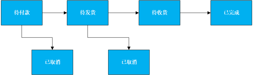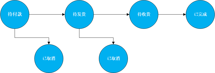 路径1:【待付款】-->【待发货】-->【待收货】-->【已取消】
