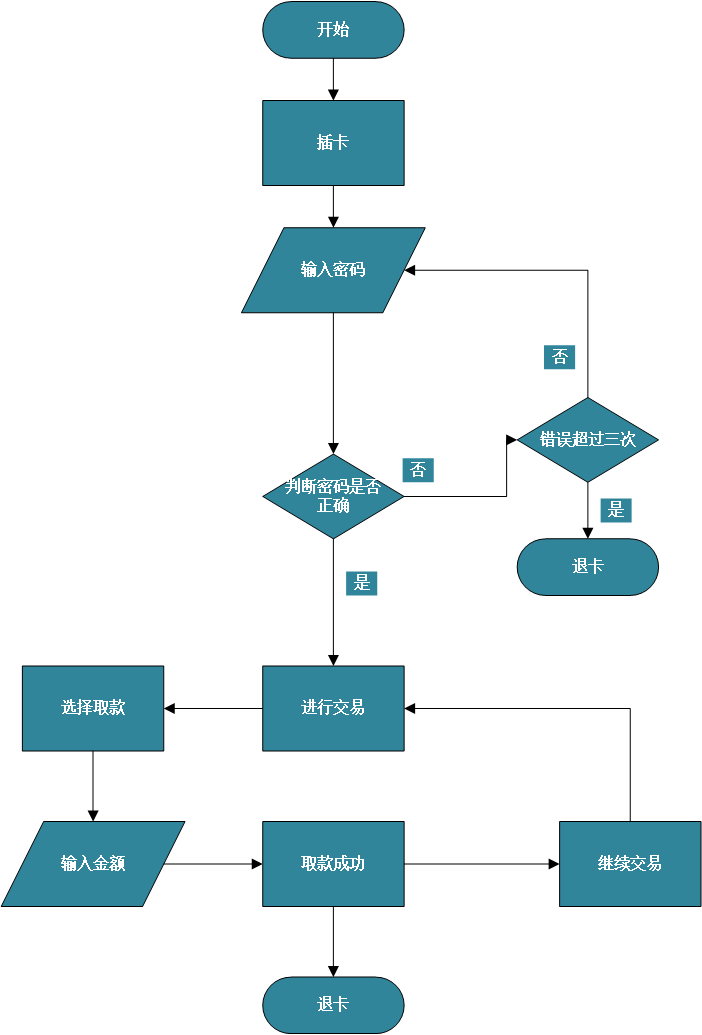 - 流程图示例:银行取款流程图