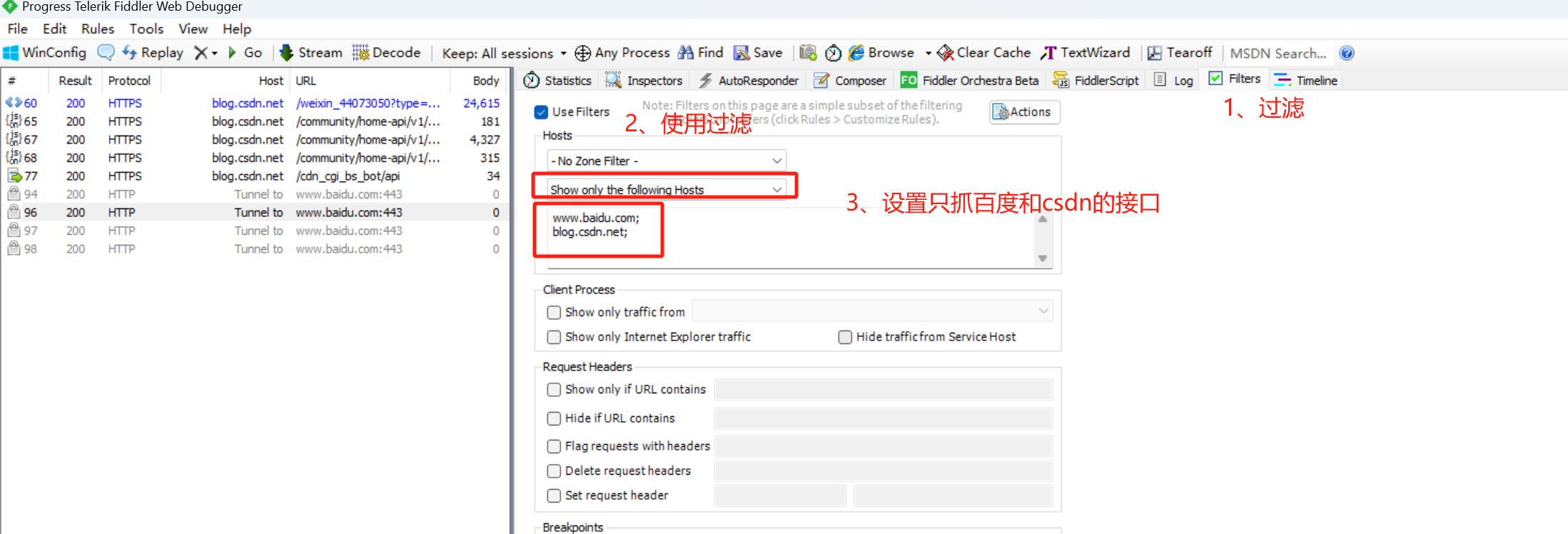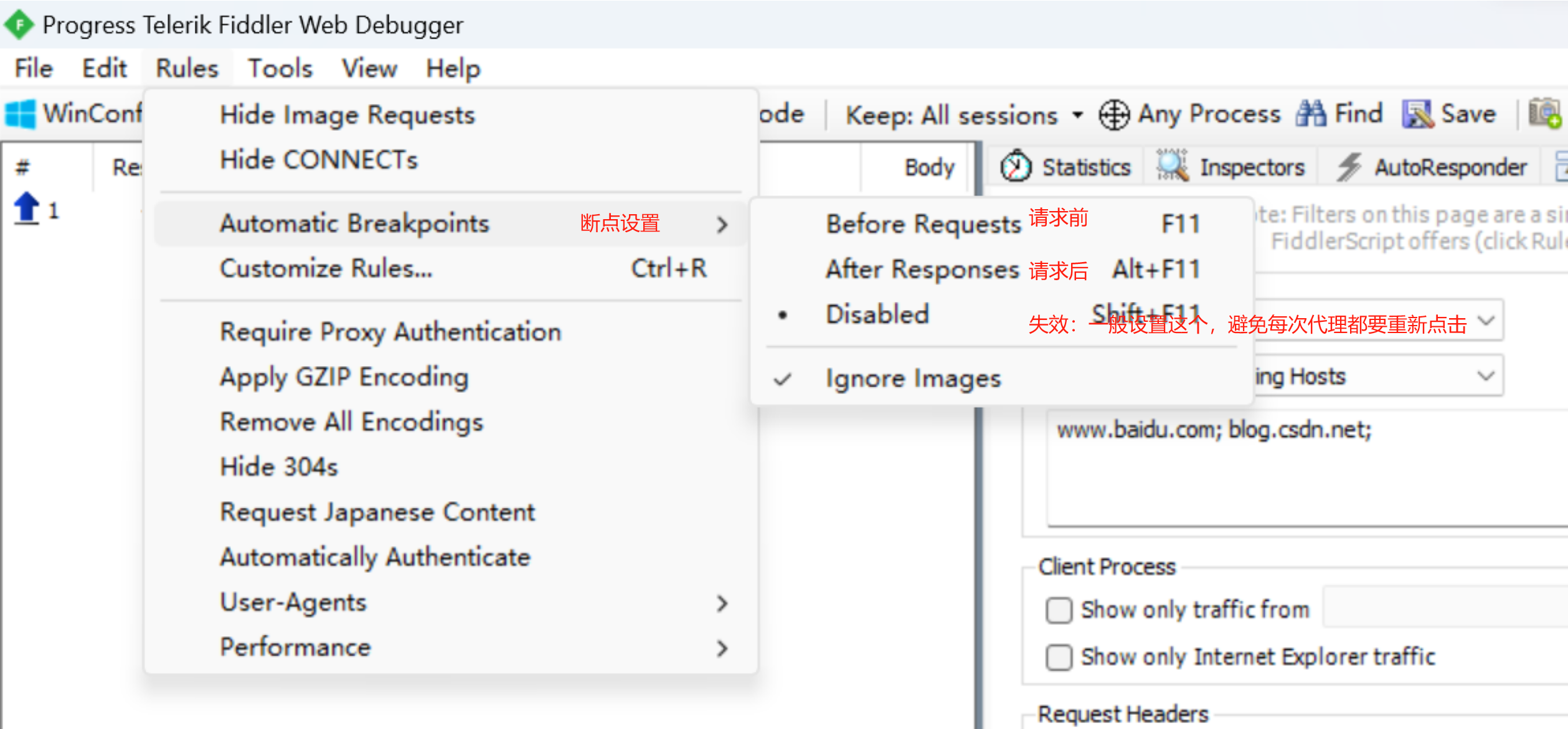 Fiddler断点设置: