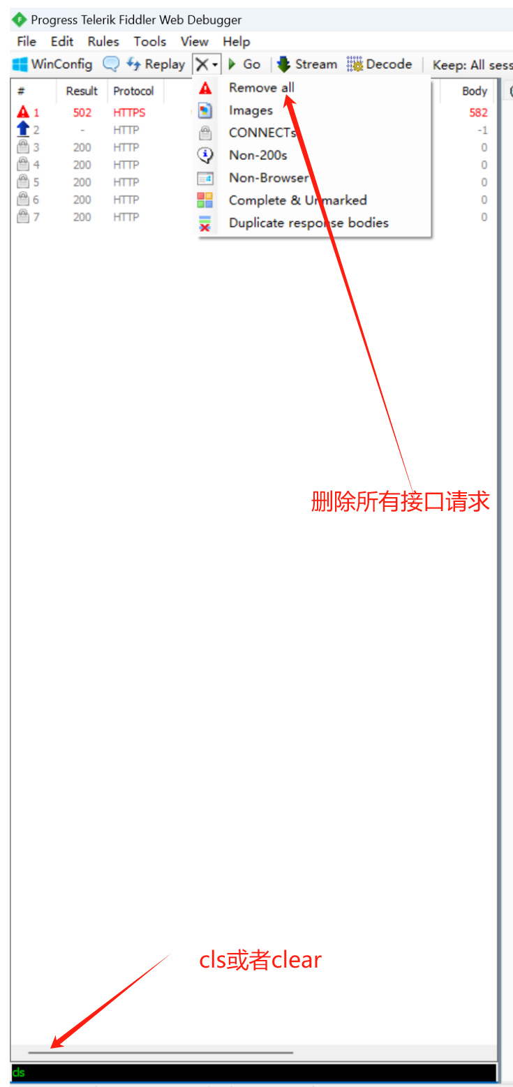 Fiddler删除请求操作: