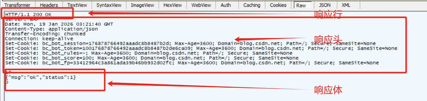 响应体:位置是在空行之后,如登录成功
