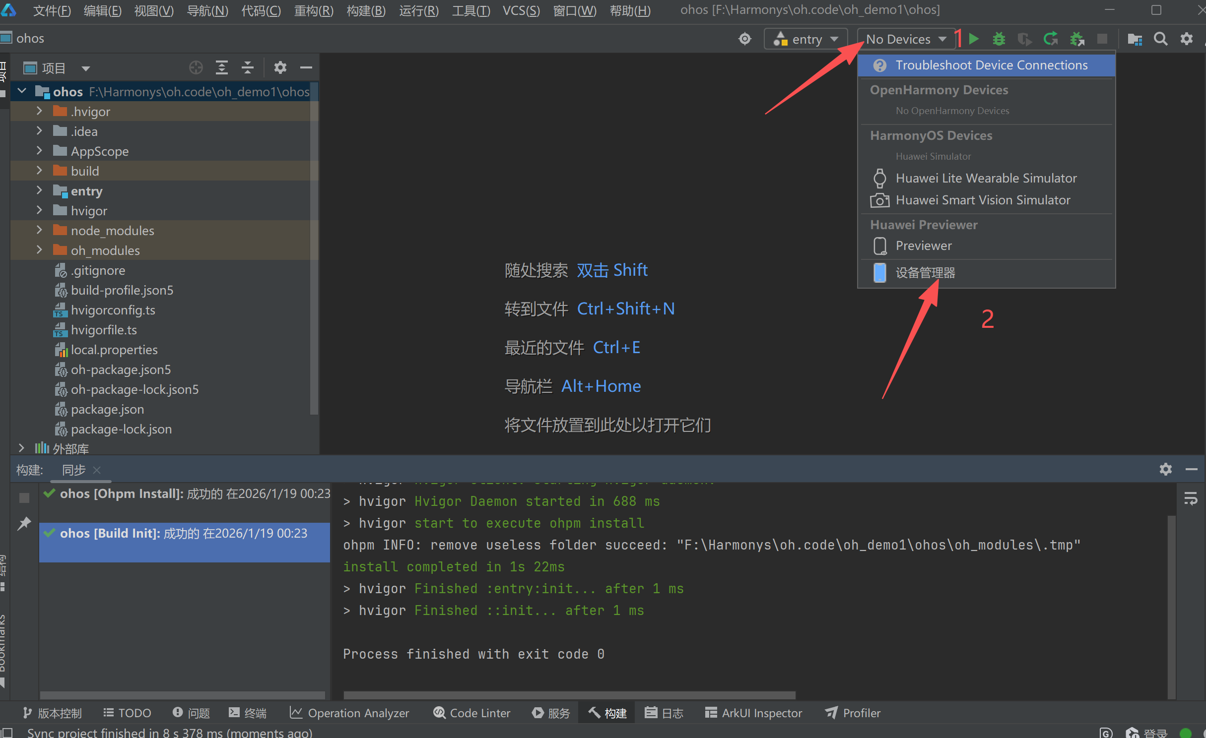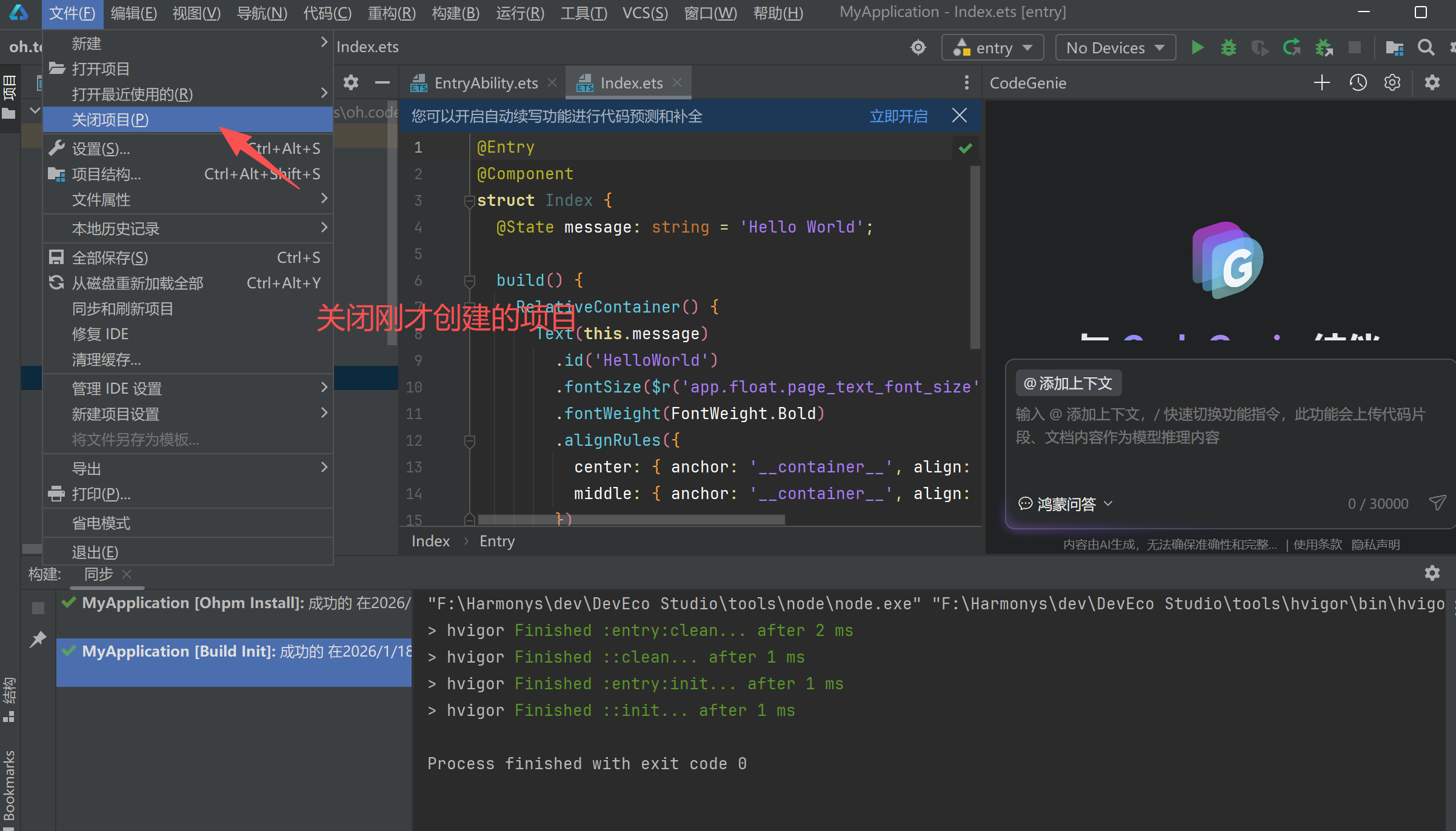 - 使用 DevEco Studio 打开项目目录。