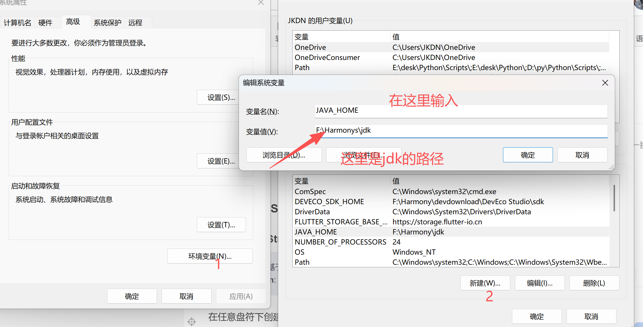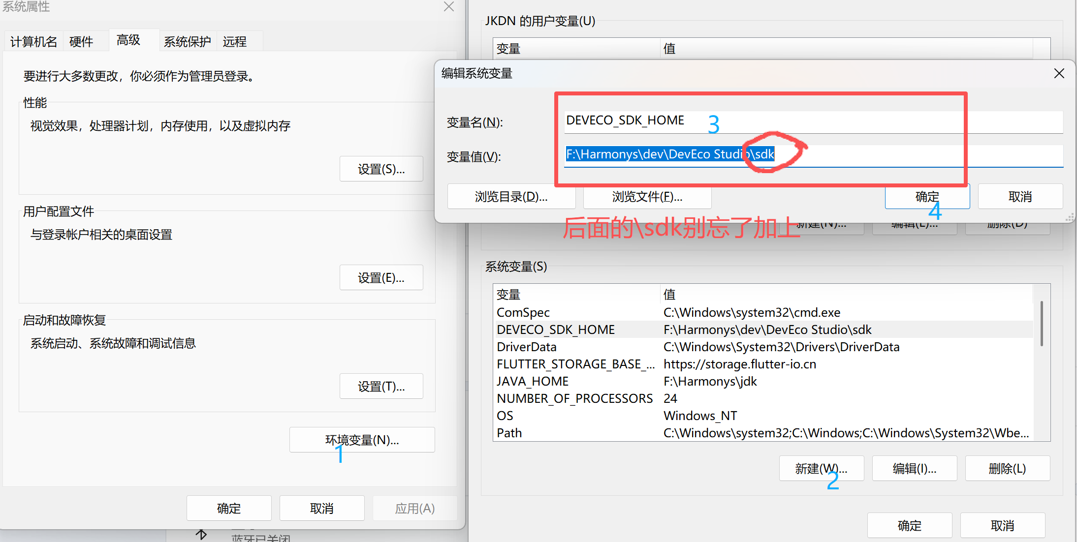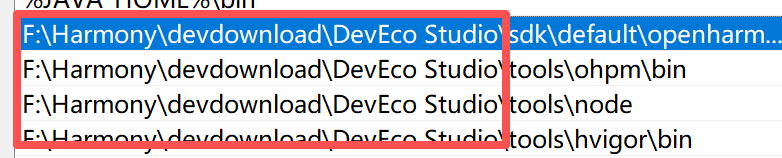 5.另外,还需要新建DEVECO_SDK_HOME变量,路径还是Dev安装位置,但是路径后面要加上\bin