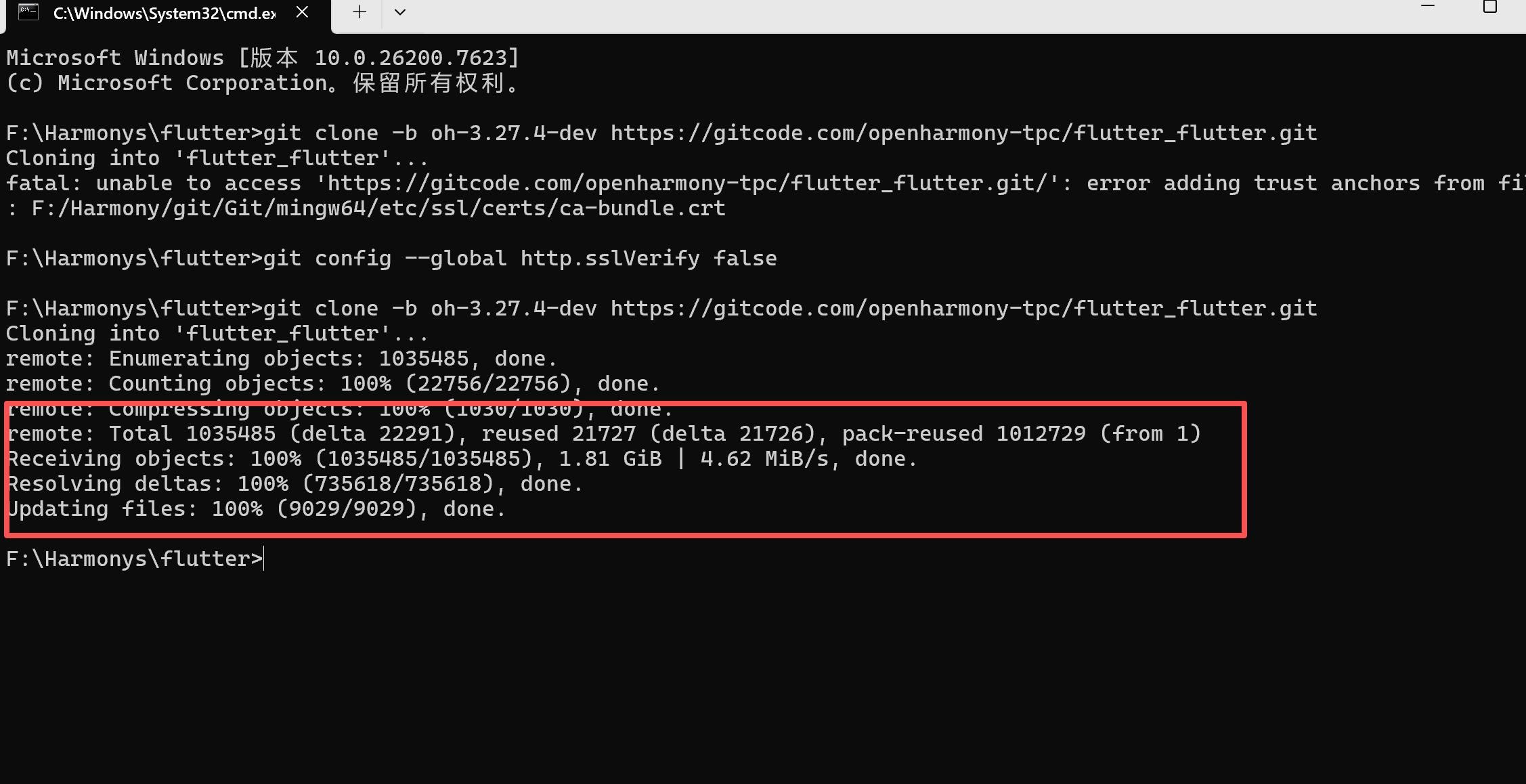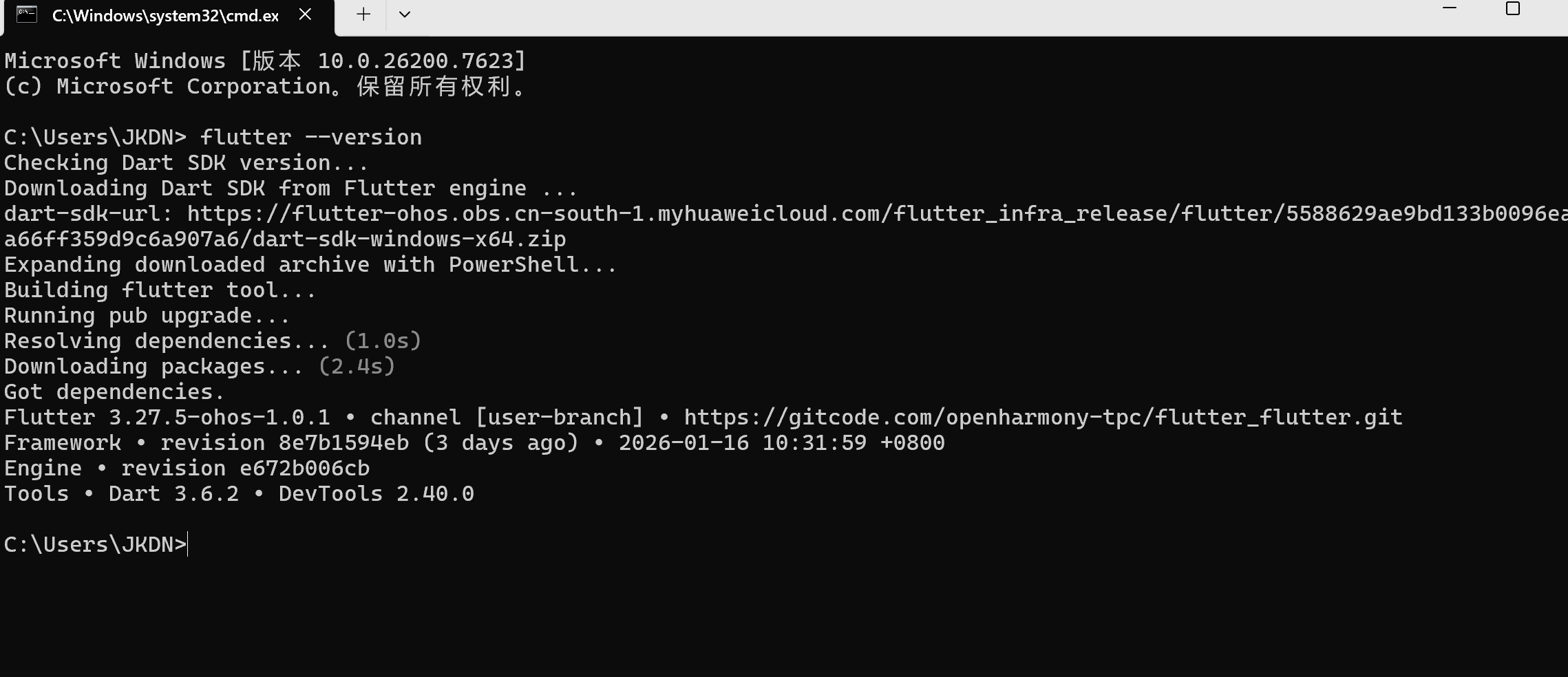然后输入下面的代码bashgit clone -b oh-3.27.4-dev https://gitcode.com/openharmony-tpc/flutter_flutter.git