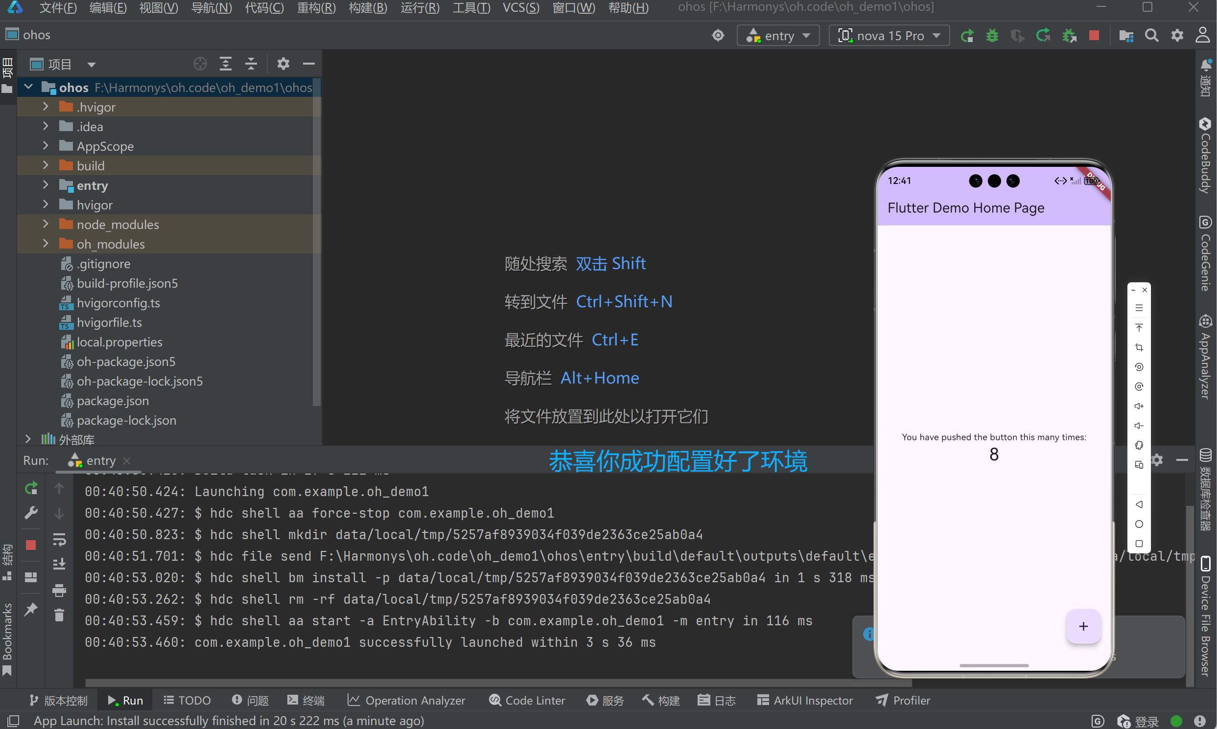 通过以上步骤,您已成功搭建一套完整的 Flutter + OpenHarmony 开发环境,并能够: