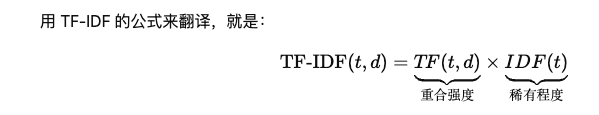 也就是词重合度越高,tfidf越高,然后这个重合的词,如果是稀有的词,那这个tfidf值更高