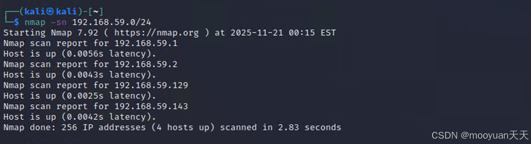 nmap 192.168.59.0/24 发现ip地址为192.168.59.143,如下所示。