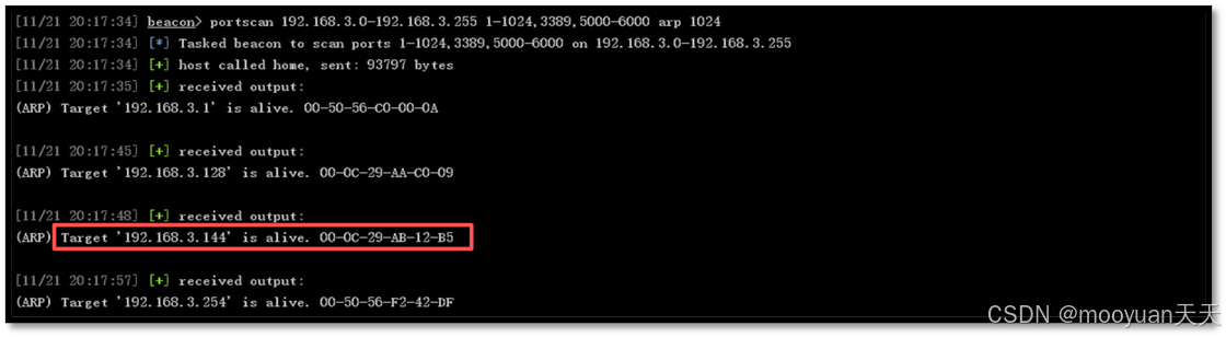 内网扫描:192.168.4.0网段的其他内网设备的ip地址为192.168.3.144,如下所示。