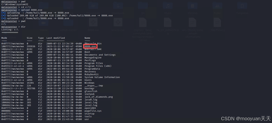 CS创建http监听192.168.59.129:8888,并生成baecon文件8888.exe,将其上传到第一层主机中,如下所示。
