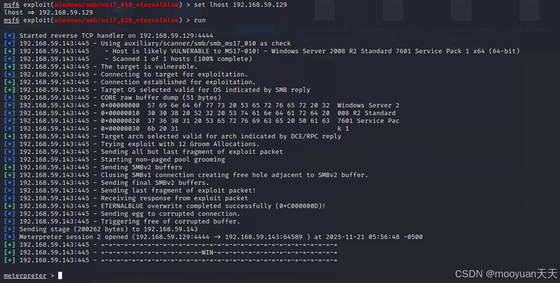 - 目标系统:Windows Server 2008 R2 Standard 7601 Service Pack 1(通过 MS17-010 等信息识别)