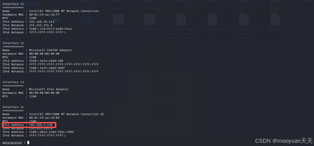 使用ipconfig命令获取到内网ip地址为192.168.3.128,如下所示。