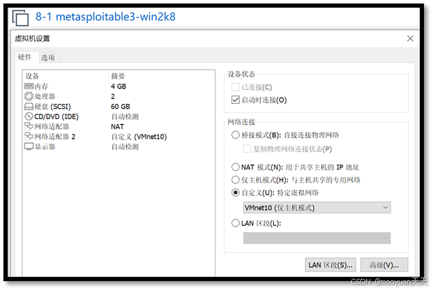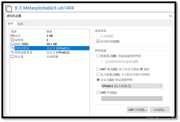 将桥接的网卡改为VMne10和VMnet11,如下所示。
