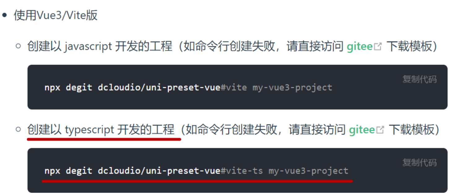 vue3+ts版:npx degit dcloudio/uni-preset-vue#vite-ts 项目名称