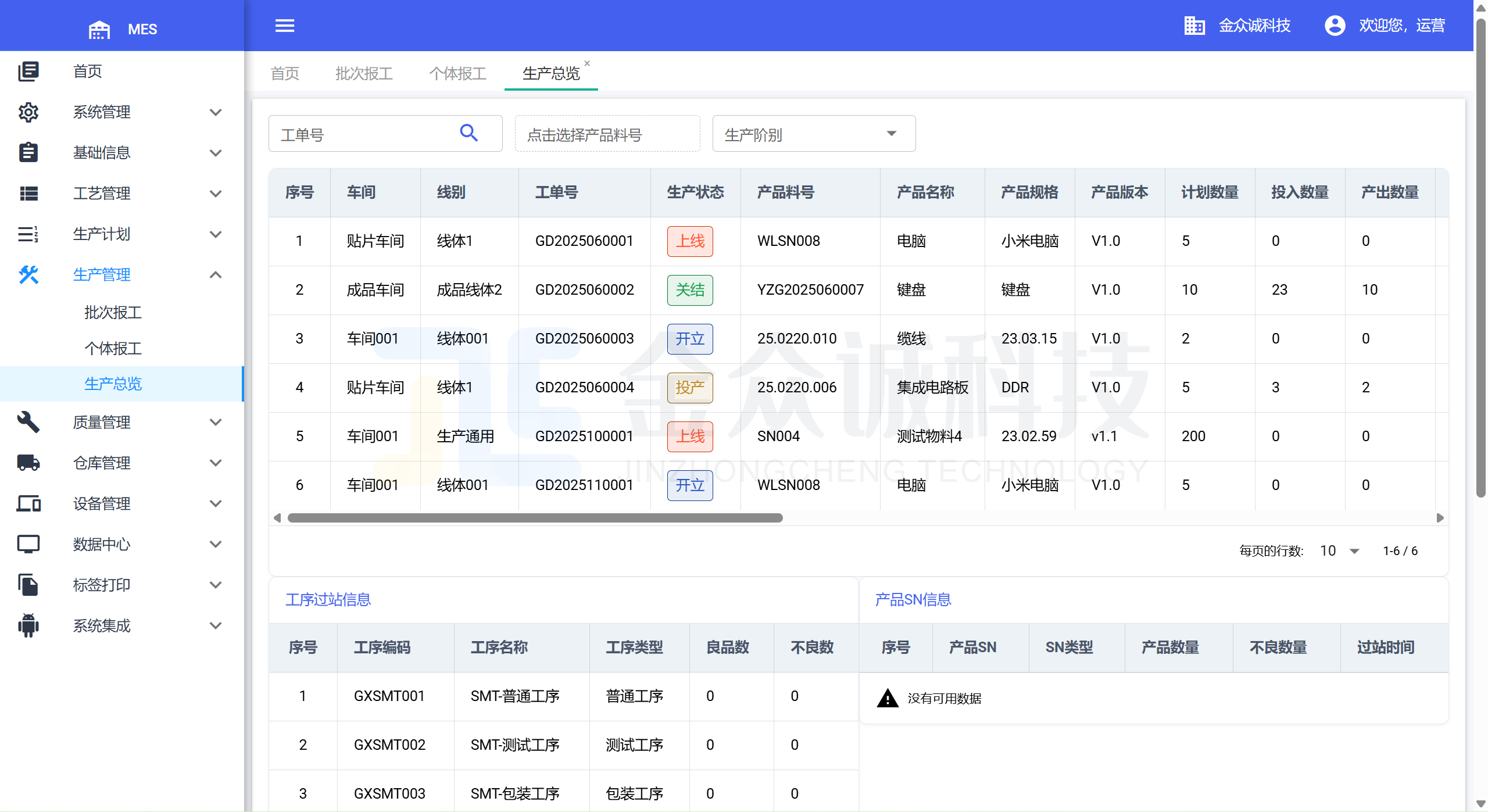金众诚MES系统界面