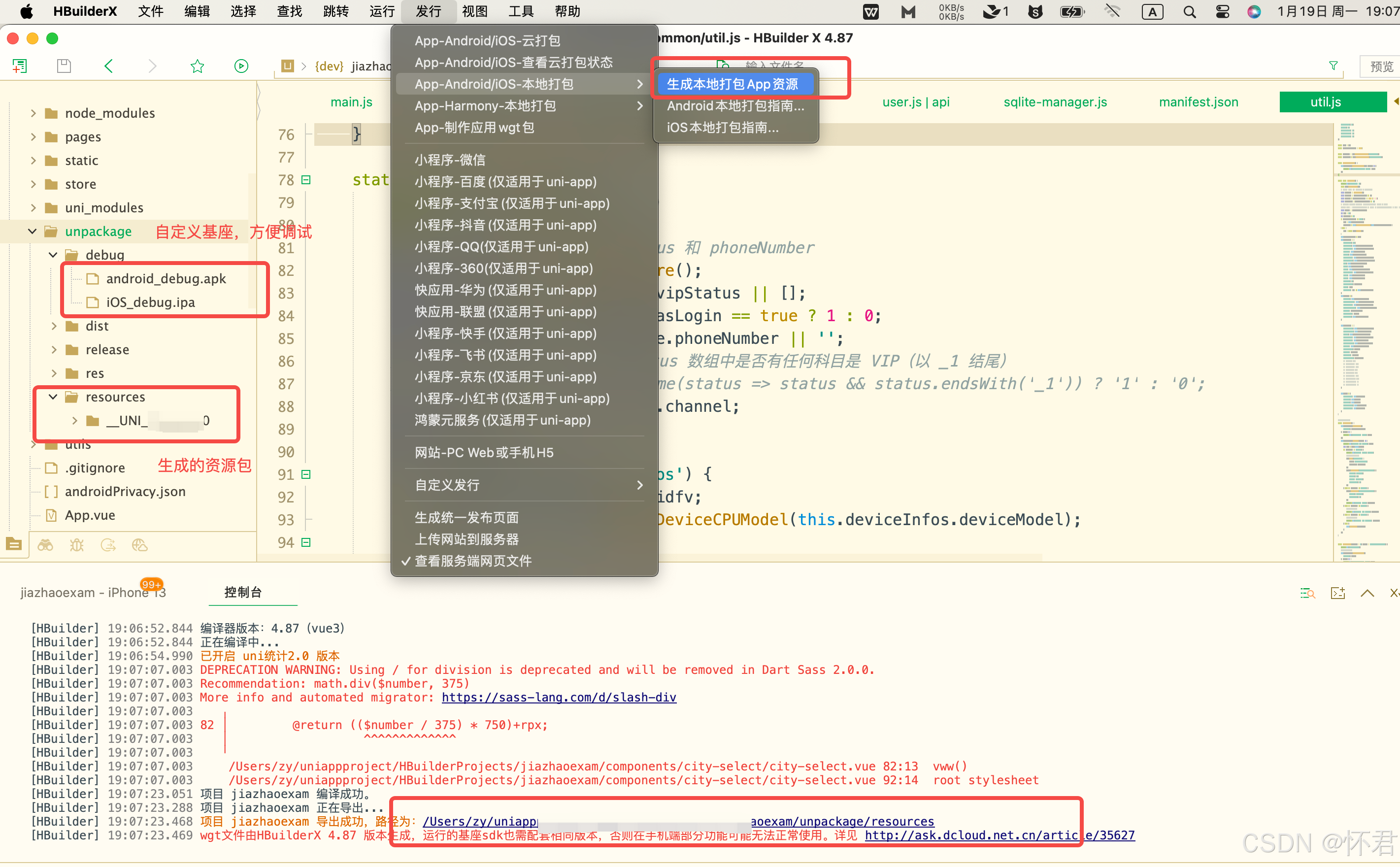 - APP子项目打包生成本地资源,并复制到离线基座中。
