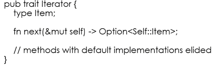 - 实现Iterator trait时必须实现next方法