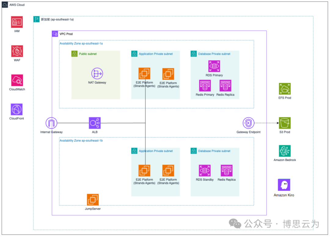 通过IAM(精细化权限管控)、MCP(Agent 协同通信协议)、CloudWatch(全链路监控)组合实现权限精细化管控、资源监控告警、任务跟踪、成本优化。