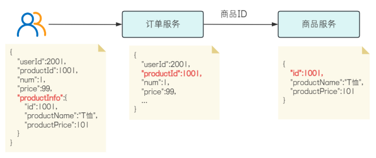 实现思路: : order-service服务向product-service服务发送⼀个http请求, 把得到的返回结果, 和订单结果融合在⼀起, 返回给调用方.