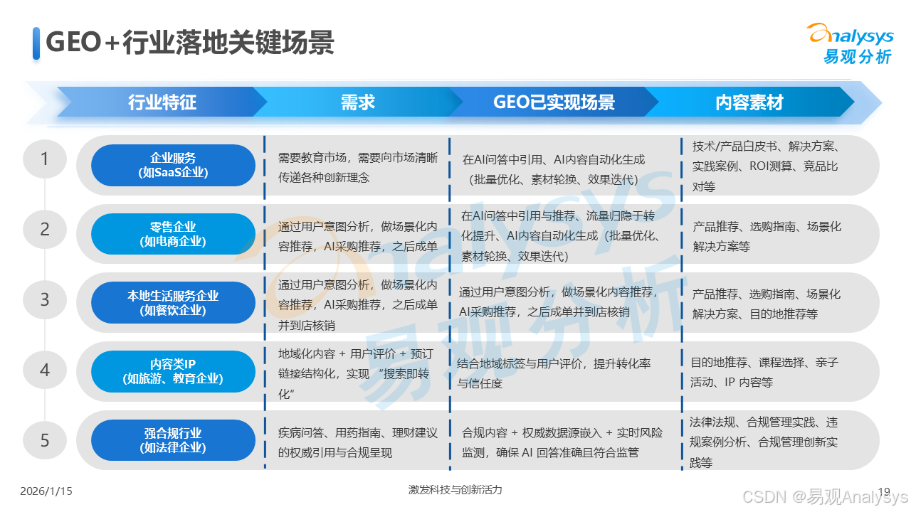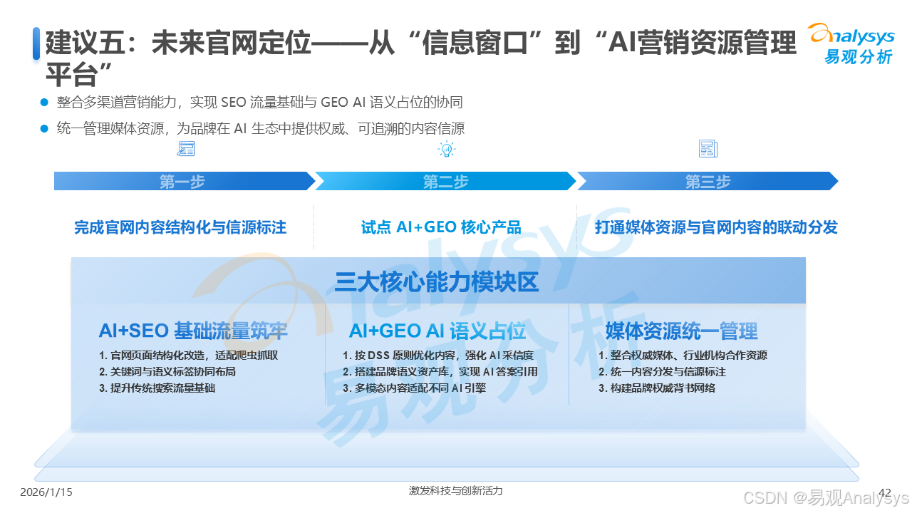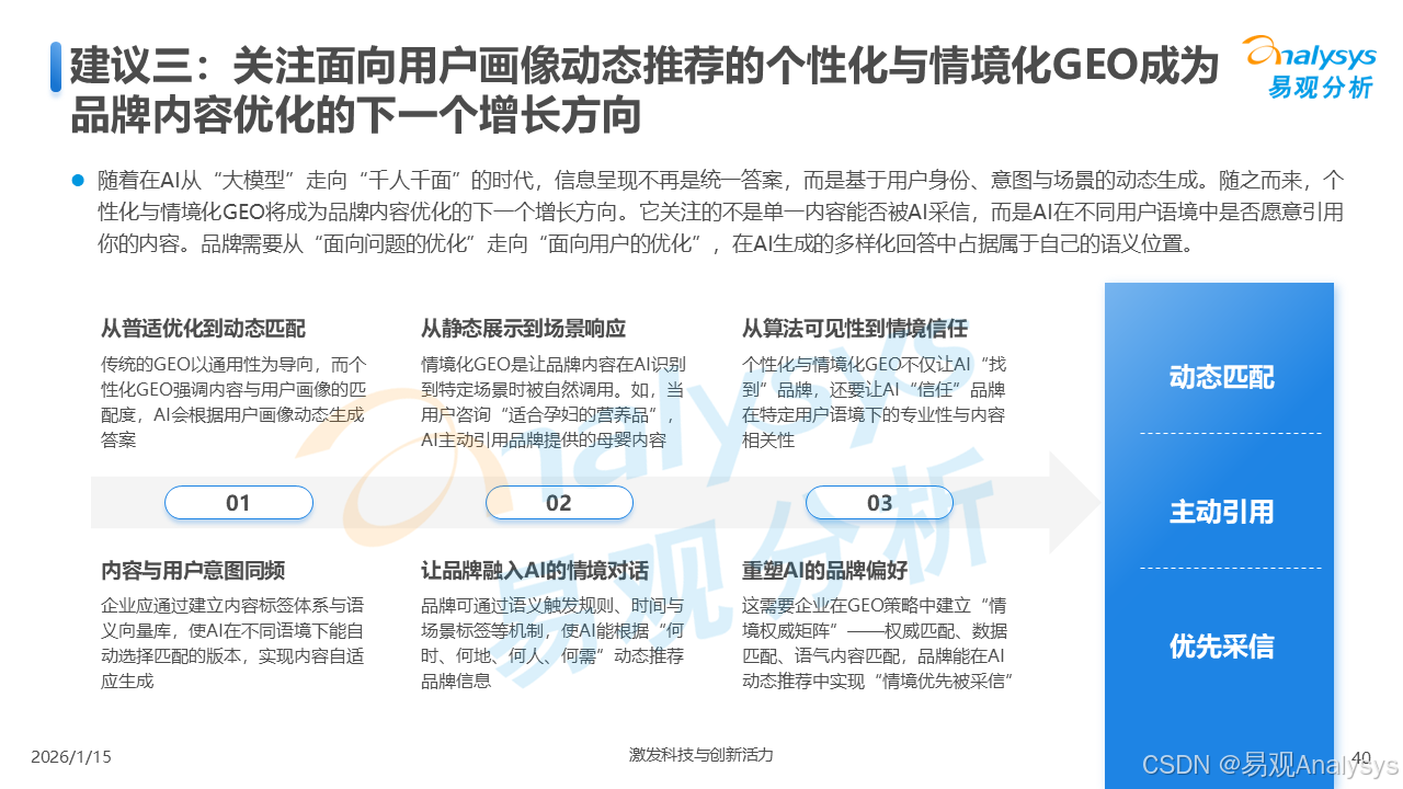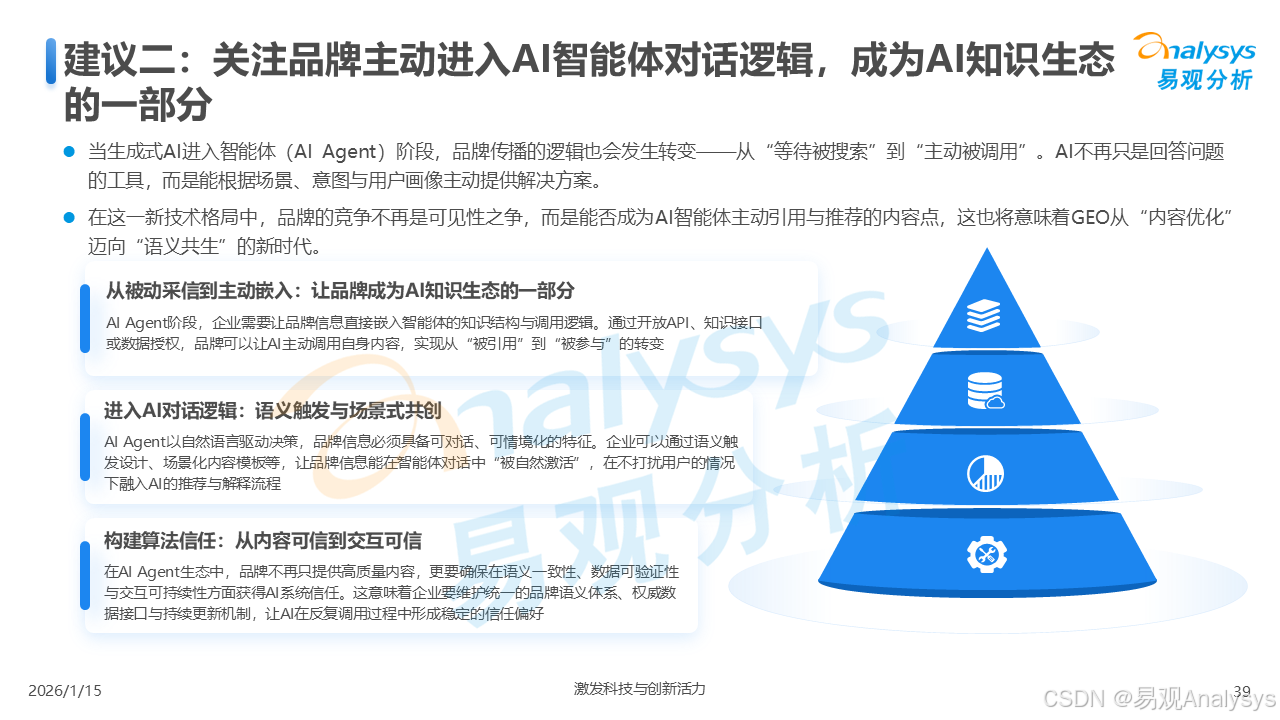 易观分析:【AI营销变革已至,GEO元年正式开启】易观分析报告揭示:GEO市场爆发在即,品牌营销正从"流量争夺"转向"语义质量"竞争。面对品牌隐形化、信任重塑等核心挑战,你的企业是否已抢占AI语义空间?点击了解GEO破解之道,把握90亿市场先机!