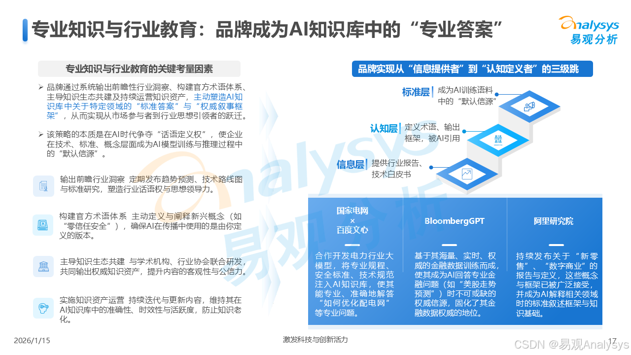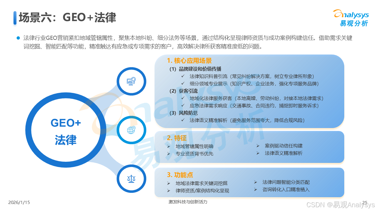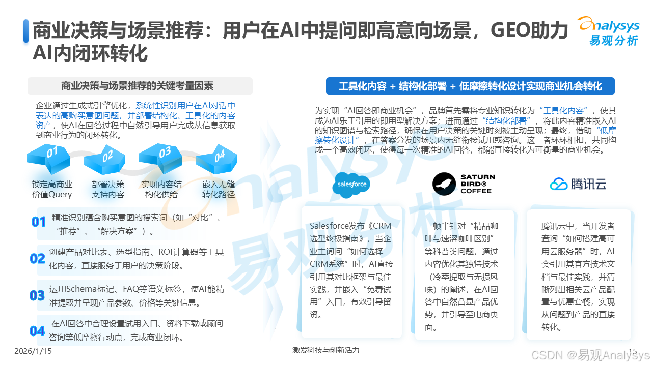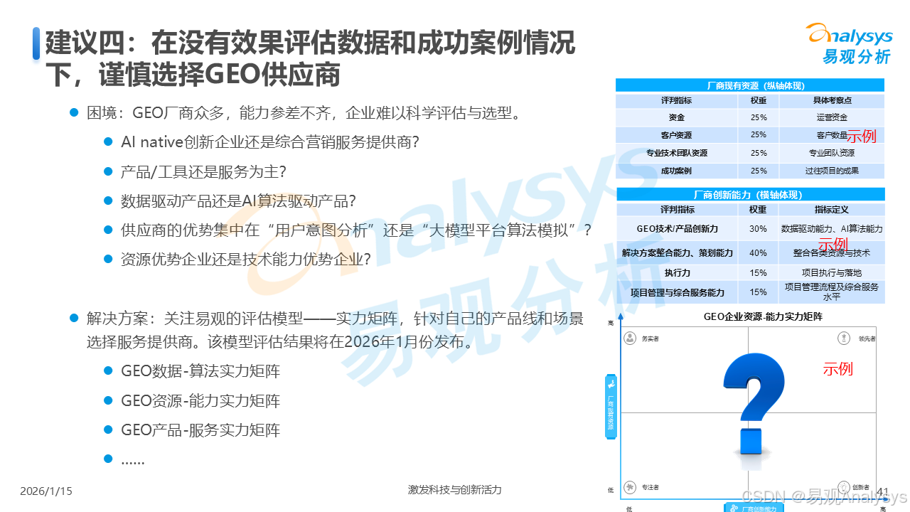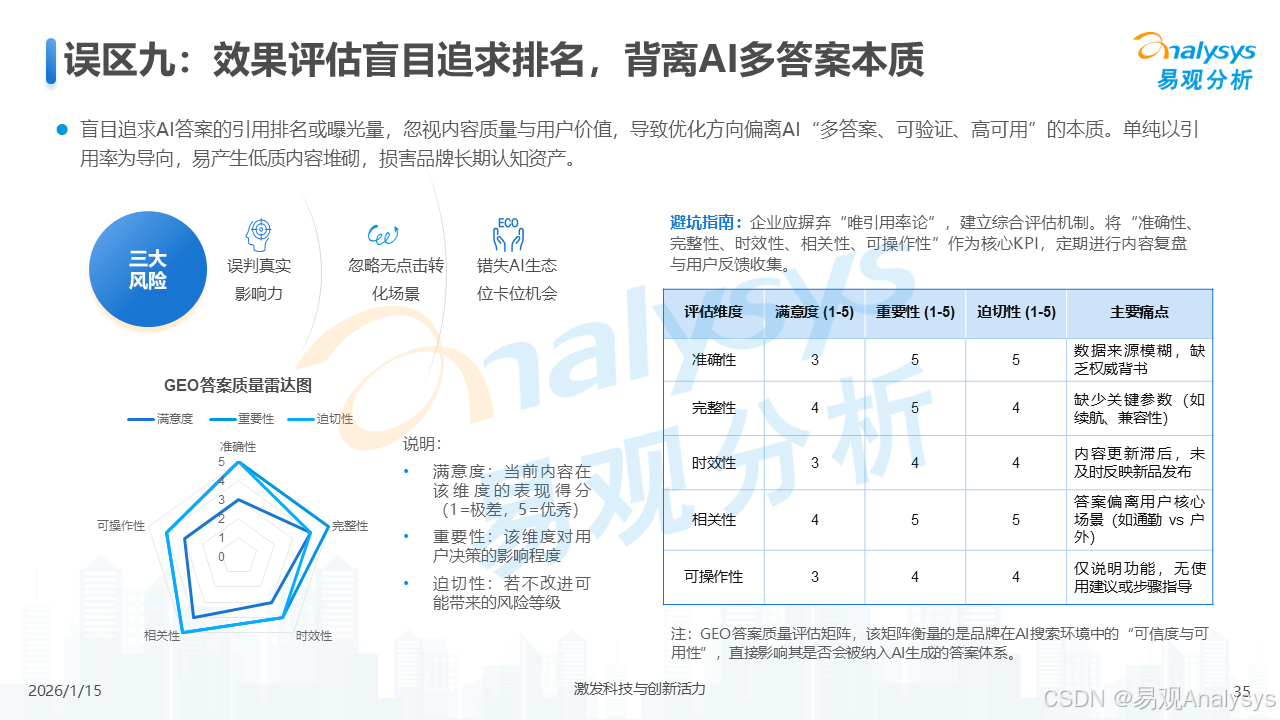 易观分析:【AI营销变革已至,GEO元年正式开启】易观分析报告揭示:GEO市场爆发在即,品牌营销正从"流量争夺"转向"语义质量"竞争。面对品牌隐形化、信任重塑等核心挑战,你的企业是否已抢占AI语义空间?点击了解GEO破解之道,把握90亿市场先机!