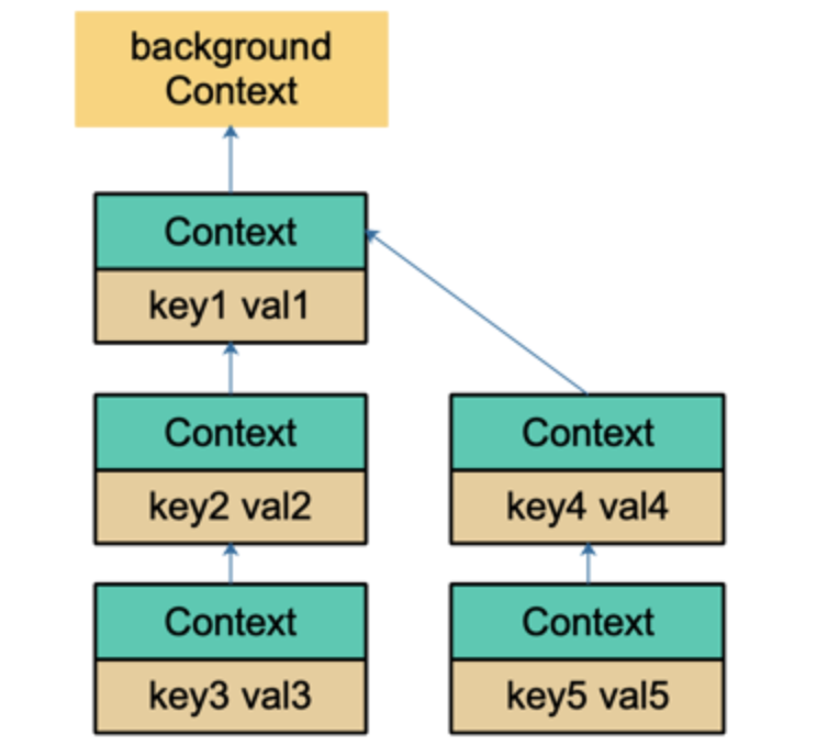 valueCtx 内部同样包含了一个 Context 接口实例,目的也是可以作为 child Context,同时为了保证其 "Value" 特性,其内部包含了两个无限制变量 key, val interface{};在调用 valueCtx.Value(key interface{}) 会进行递归向上查找,但是这个查找只负责查找 "直系" Context,也就是说可以无限递归查找 parent Context 是否包含这个 key,但是无法查找兄弟 Context 是否包含。