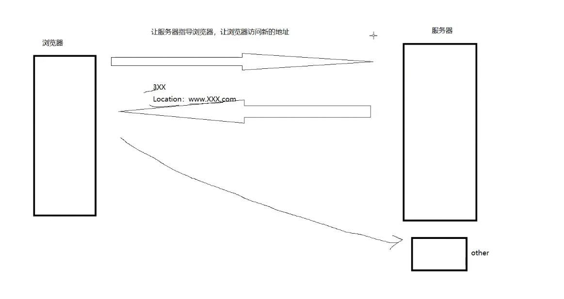根据图片你大概就能了解了,就是你浏览器向服务器发出请求,然后服务器发出3xx的状态码外加Location(这个是响应报头的内容),那么浏览器就会根据这个location去访问其他的服务器!