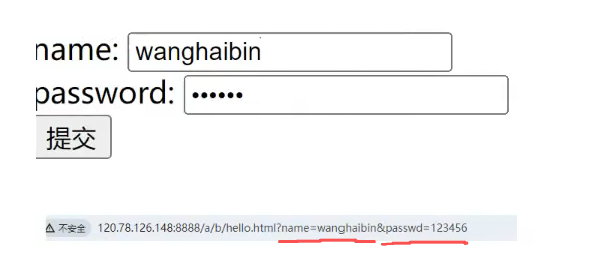 - GET方法:我们提交的参数是通过url提交的