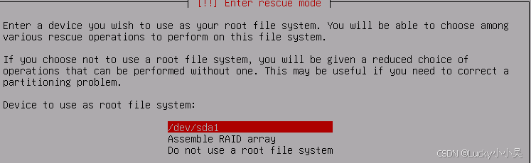 Do not use a root file system,进入最小化命令行环境