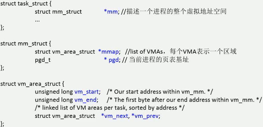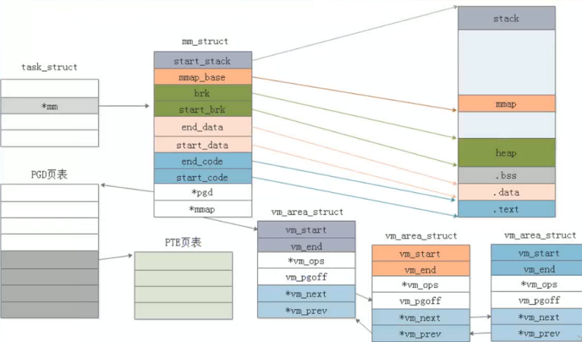 因为每个进程的虚拟地址范围相同,所以每个进程维护自己的一套页映射表,通过将进程页表地址配置给MMU实现不同的进程相同的虚拟地址映射到不同的物理地址。进程的页表地址通过pdg成员变量保存。